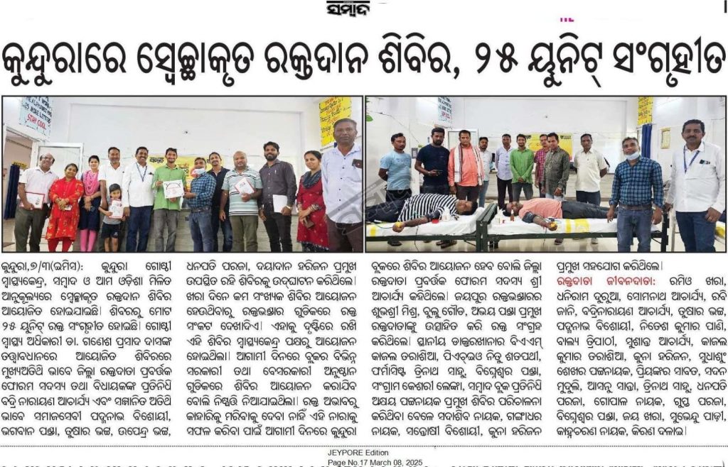 The Blood Donation Camp held at CHC Kundra on March 7, 2025, was a great success, with numerous volunteers coming forward to donate blood and support the cause. The event aimed to encourage voluntary blood donation and provide life-saving assistance to those in need.